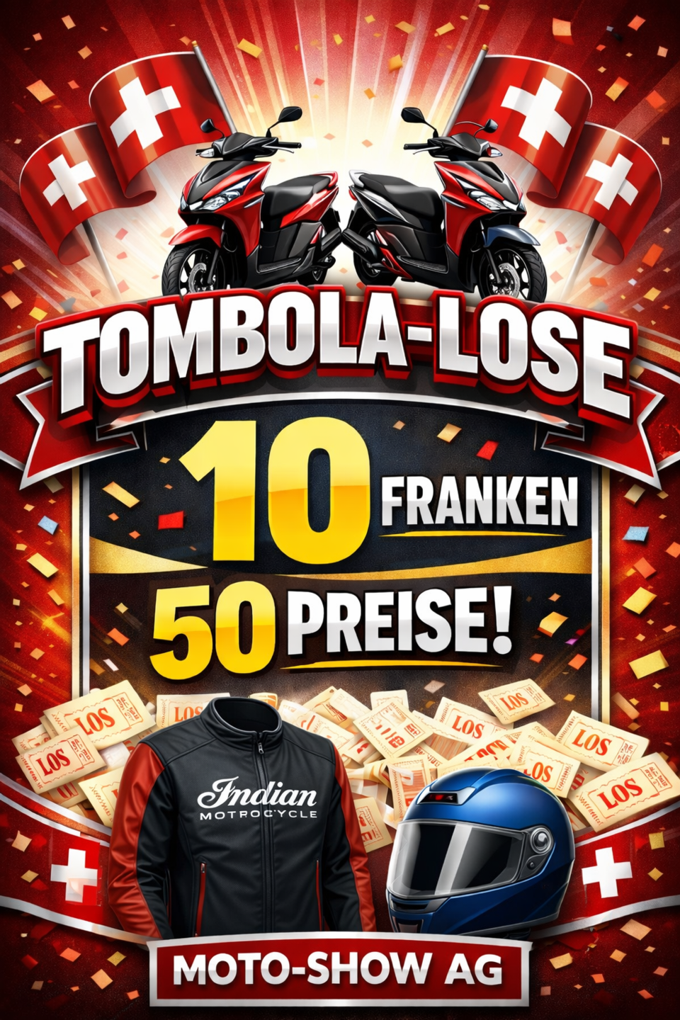 Tombola-Lose: CHF 10.– pro Stück auch online bestellbar unter info@motoshow-ag.ch.